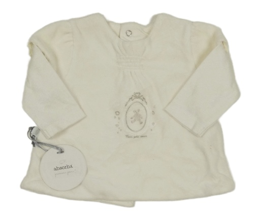 Nové - Smotanové zamatové podšité tričko s medvěďom