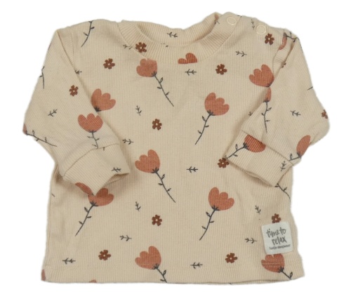 Svetloružové rebrované tričko s kvetinami