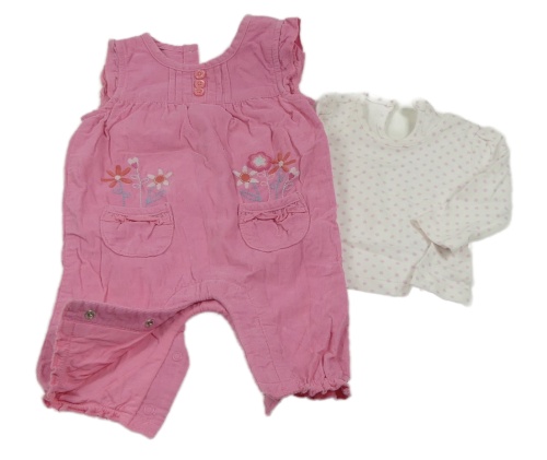 2 set - Biele bodkovaná é triko + ružový menšestrový podšitý overal s vreckami