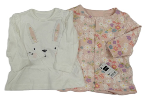 Nové - 2 set - biele tričko s králíkem + svetloružová prepínaci kvetovaná mikina Dunnes