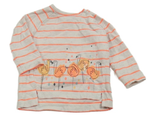 Smetanovo-neónově korálové pruhované melírované tričko s plameňáky baby face