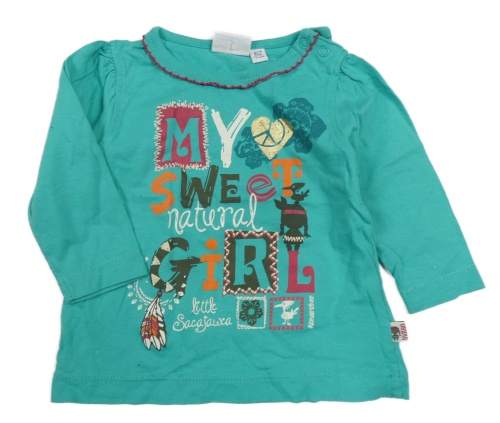 Modrozelené tričko s nápisom a obrázkami Blue Seven