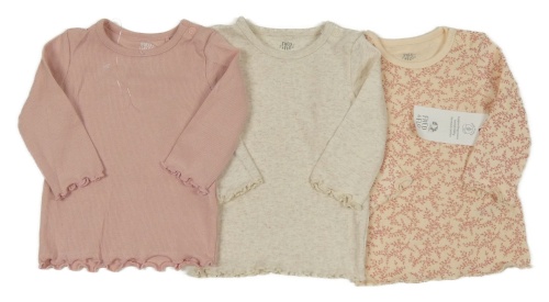 Nové - 3x žebrované triko - světlerůžové květované + světlerůžové + smetanové F&F