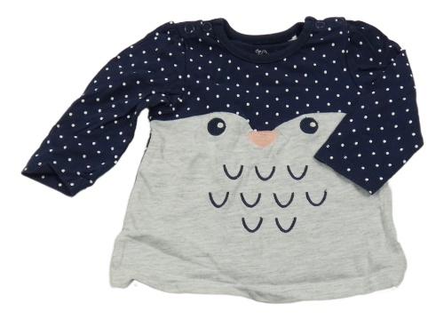 Tmavomodro-sivé tričko so sovou a bodkami Topomini