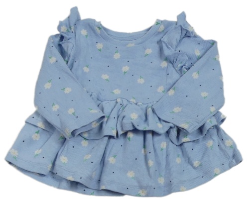 Svetlomodrá kvetovaná rebrovaná tunika s volánikmi Matalan