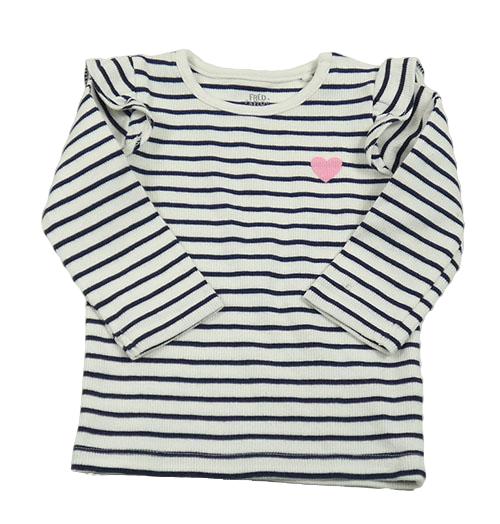 Bielo-čierne pruhované rebrované tričko so srdcem a volánikmi F&F