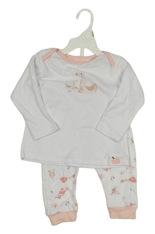 Nové - 2set - Biele tričko s kachnami + biele ľahké tepláky so zvířaty