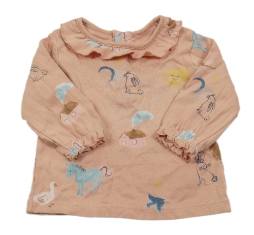 Pudrové tričko so zvieratkami a domečky a sluníčky a volánikom M&S