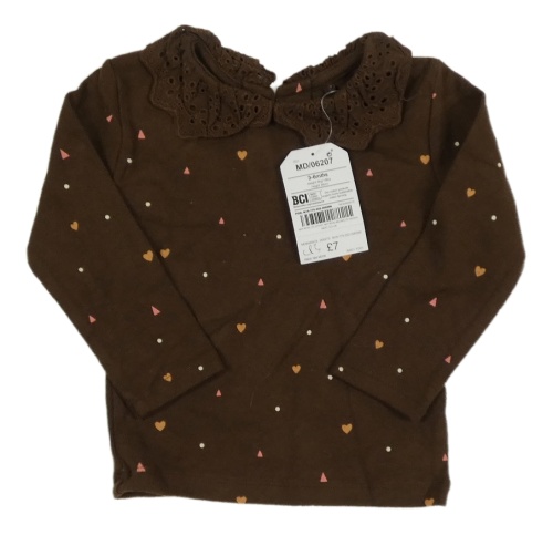 Nové - Hnedé tričko so srdiečkami a madeiorvým golierikom Next