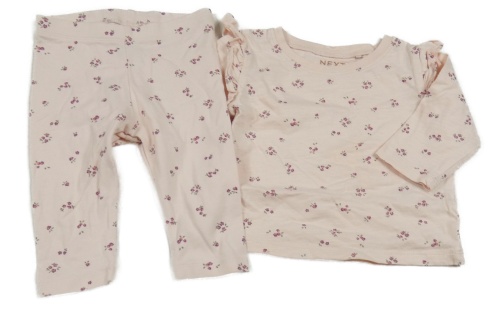2set - Svetloružové tričko s kvietkami a volánky + legíny Next