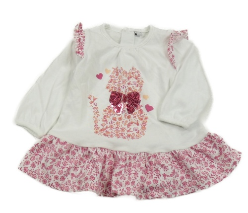 Bielo-ružová kvietkovana peplum tunika s mačičkou