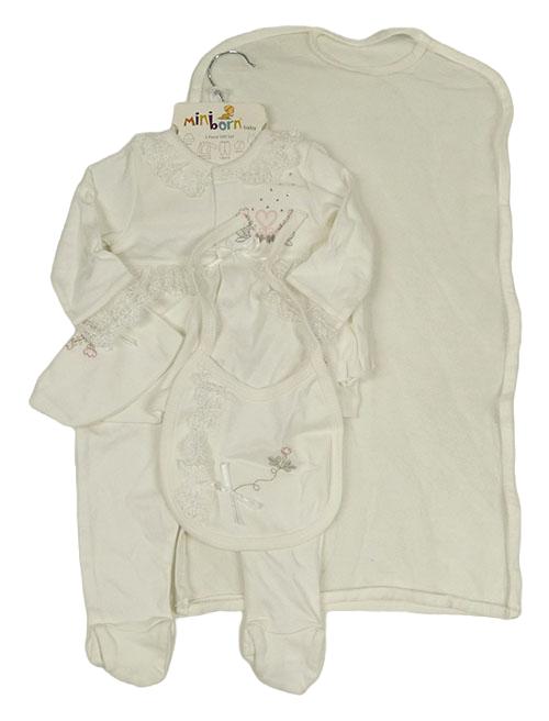 Nové - 5set - Biele prepínaci tričko s výšivkou a krajkou + polodupky + bavlněná čepice + rukavičky + slinták