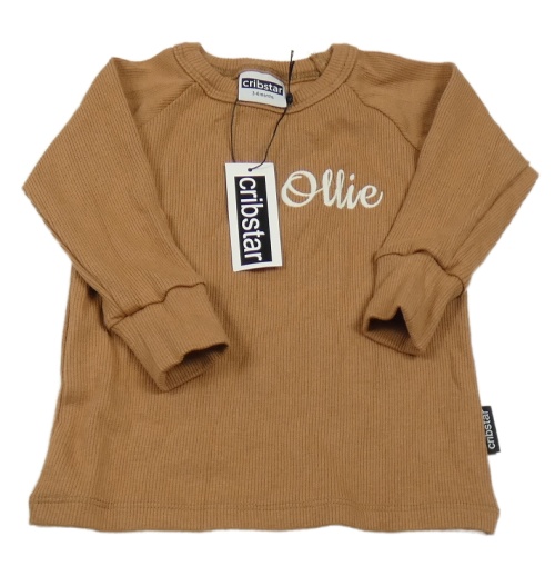 Nové - hnedé rebrované tričko s nápisom cribstar