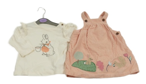 Nové - 2 set - smotanové tričko s králíkem + ružové na traké menšestrové šaty s obrázkami M&S
