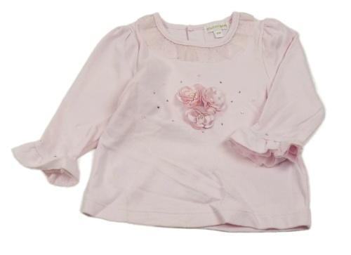 Svetloružové tričko s 3D kvetinami a kamienkami