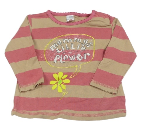 Ružovo-svetlohnedé pruhované tričko s nápismi a kvietkom Next