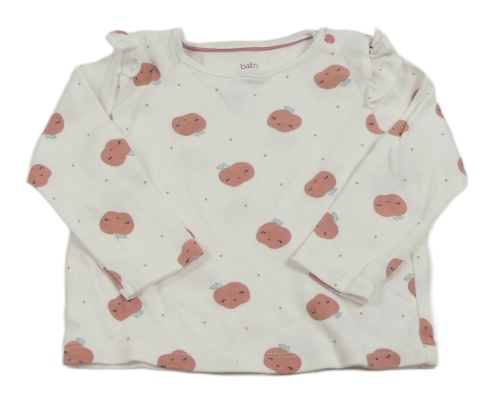Biele bodkovaná é tričko s jablky a volánikmi C&A