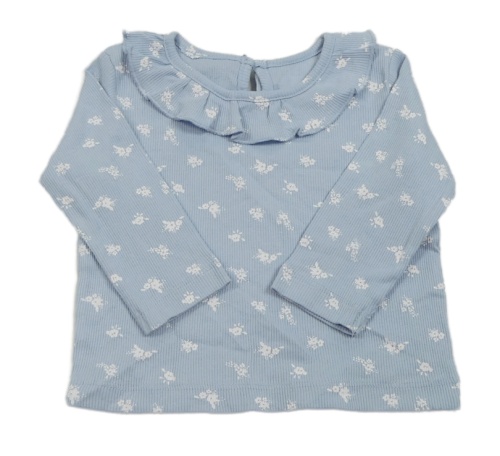 Svetlomodré rebrované tričko s kvietkami a volánikom Matalan