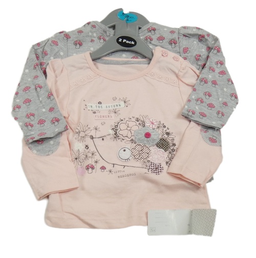 Nové - 2x triko - růžové s květy + šedé melírované s houbami Early Days