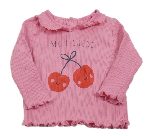 Ružové rebrované tričko s třešničkami a nápisom a golierikom PRIMARK