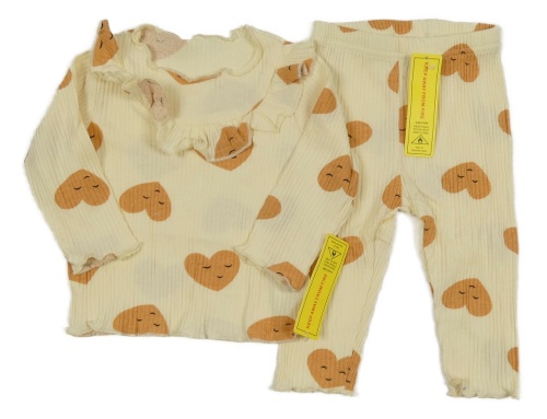 Nové - 2set - Krémové rebrované tričko so srdiečkami a volánem + legíny Shein