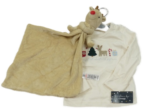 Nové - 2Set - Biele vianočné tričko s obrázky + béžový plyšový usínáček so sobom George