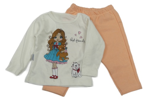 2 set - biele tričko s dívkou + marhuľové tepláky