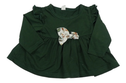 Tmavozelená tunika s mašlou a volánikmi Shein
