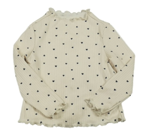 Smotanové rebrované tričko so srdiečkami Shein