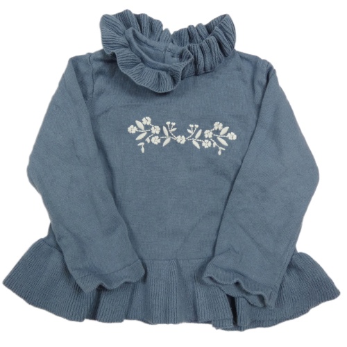 Šedomodrá pletená tunika s výšivkou a volánikmi Tu