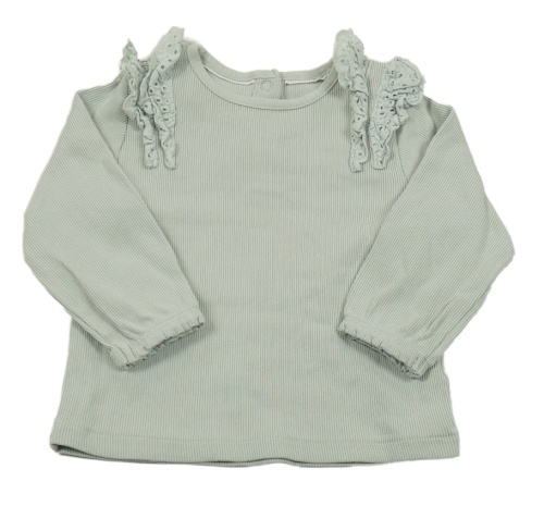 Zelenkavošedé rebrované tričko s madeirovými volániky C&A