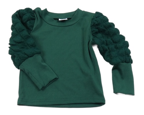 Tmavozelené rebrované tričko s nařasenými rukávy