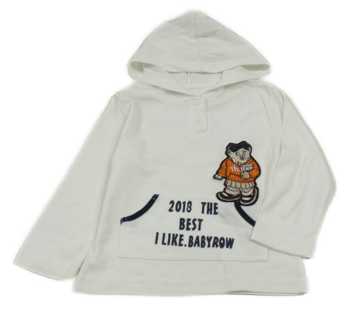 Biele tričko s medvědem, nápisom a kapucňou