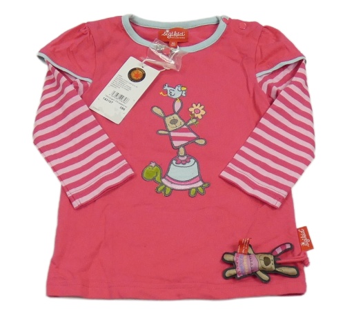 Nové - Ružové tričko so zajícem a pruhovanymi rukávy