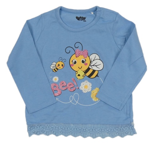 Modré tričko so včelkami a čipkou Bubble Gum