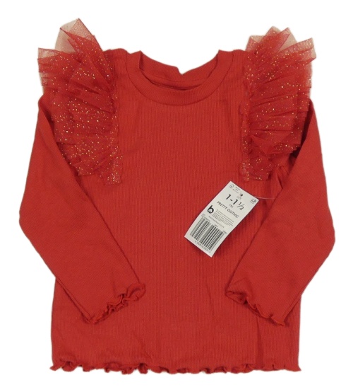 Nové - Červené rebrované tričko s tylovymi trblietavymi volániky Matalan