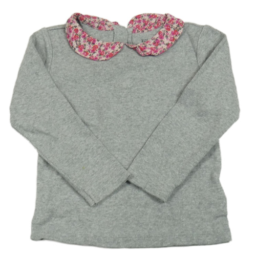 Sivé rebrované tričko s kvetovaným golierikom GAP