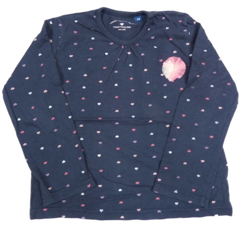 Tmavomodré tričko so srdiečkami a 3D květem Tom Tailor