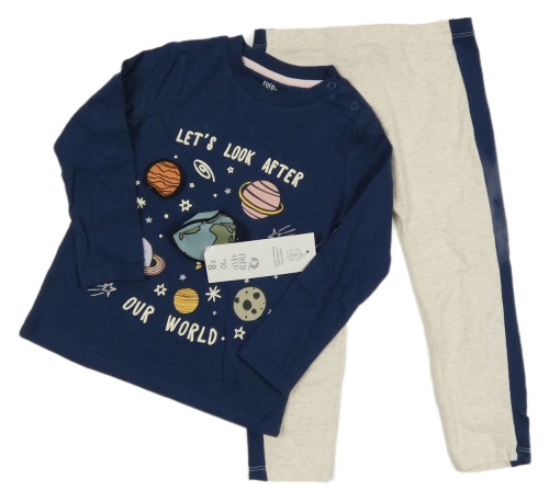 Nové - Tmavomodré tričko s planetami + béžové melírované legíny s pruhom F&F