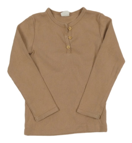Hnedé rebrované tričko s gombíkmi H&M