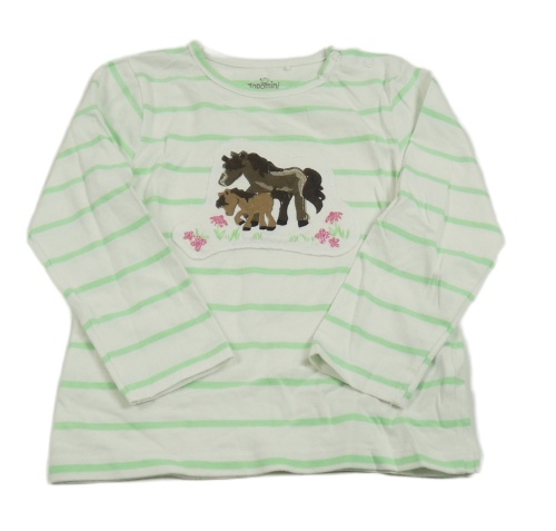 Bielo-svetlozelené pruhované tričko s koníky Topomini