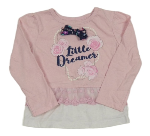 Svetloružové tričko s čipkou a růžemi a mašlou
