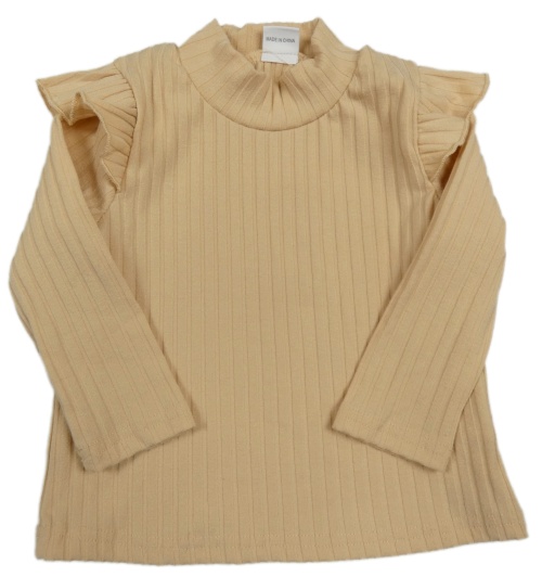 Marhuľové rebrované tričko s volánikmi a stojačikom