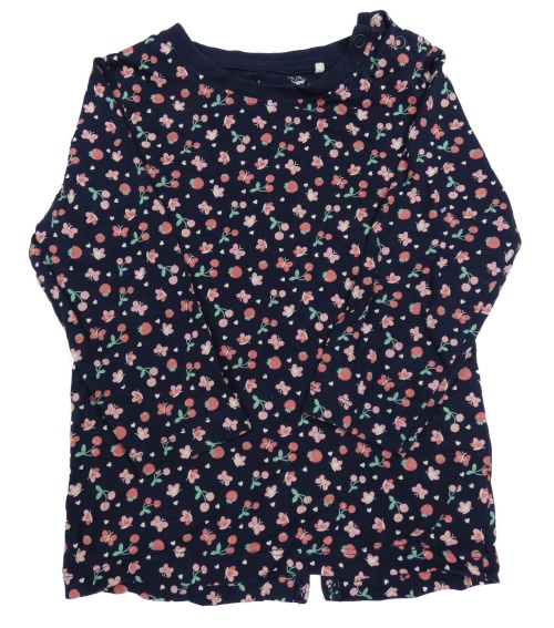 Tmavomodré tričko s motýlikmi a třešničkami a jahůdkami Topomini