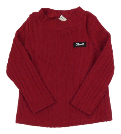 Tmavočervené rebrované úpletové tričko s nášivkou Shein