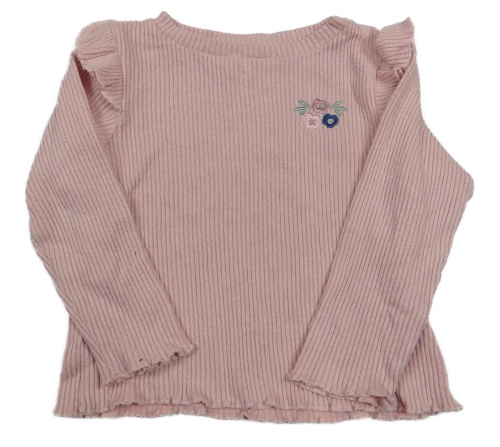Ružové rebrované úpletové tričko s výšivkami květin a volánikmi