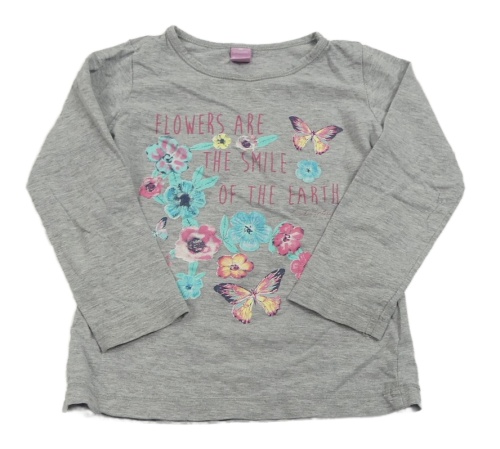 Sivé tričko s kvietkami a nápisom Dopodopo