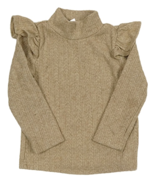 Béžové úpletové tričko s volánikmi a stojačikom Shein