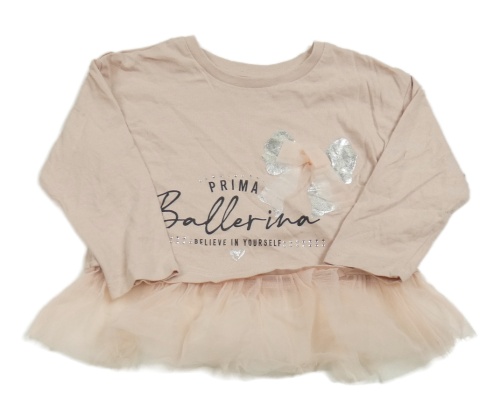 Svetloružové tričko s nápisom a tylovým volánikom