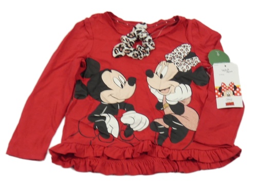 Nové - 2set - Červené tričko s Minnie a Mickeym + bílá vzorovaná gumička do vlasů C&A